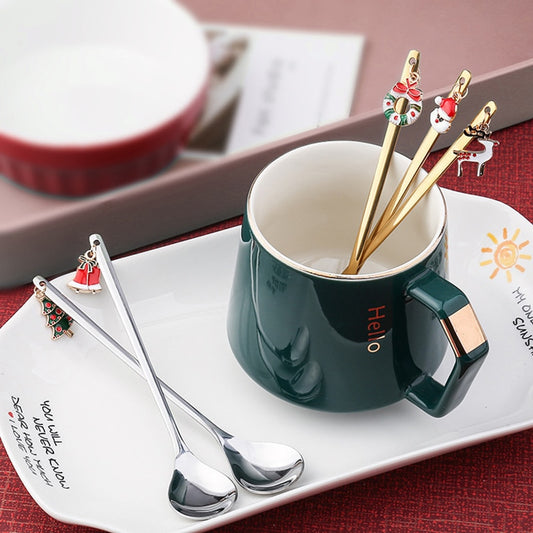 6pcs Stainless Steel Christmas Spoon Gold Home Party Decorative Tableware Dessert Coffee Tea Stirring Spoons Dinner Cutlery Gift